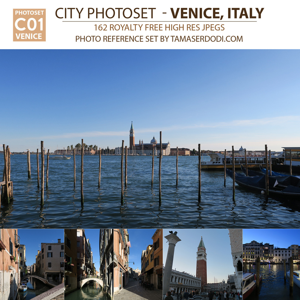 C01 Venice, Italy City Photoset includes different buildings, streets, canals from early morning till the end of day so you can see the night lights too.